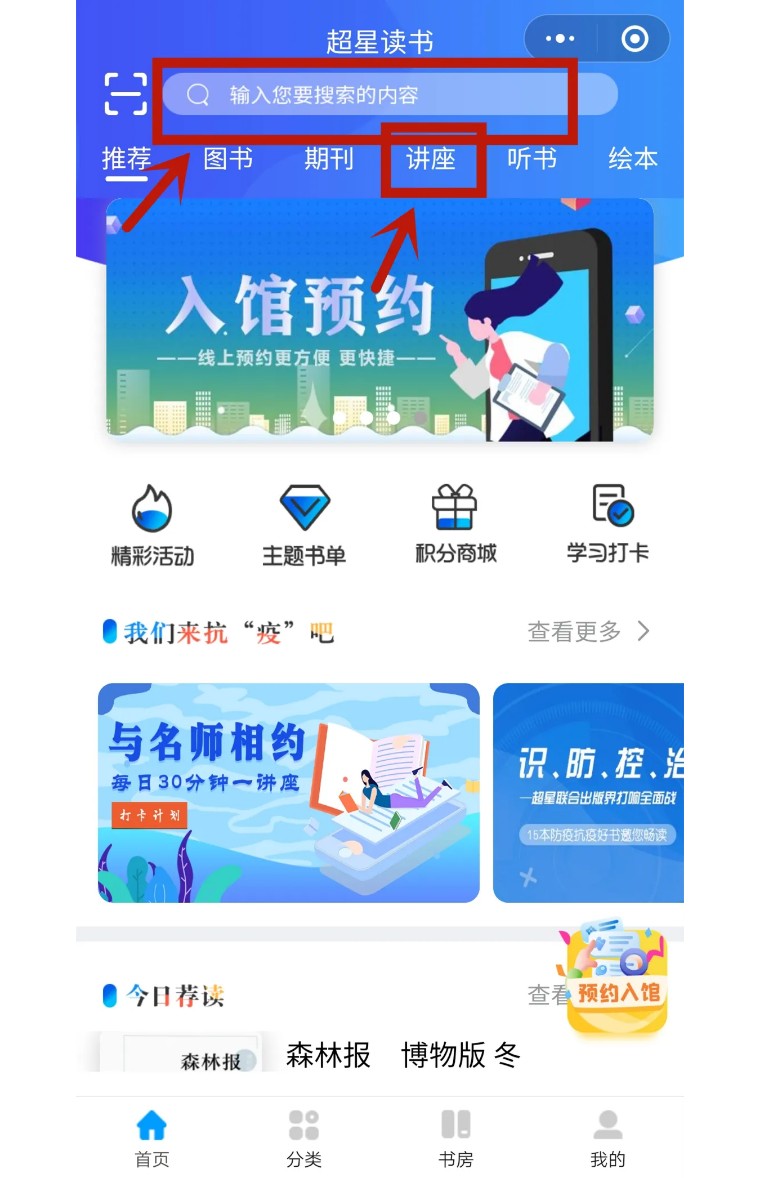其次,点击小程序中“讲座模块”或根据讲座名称搜索讲座即可在线免费观看。