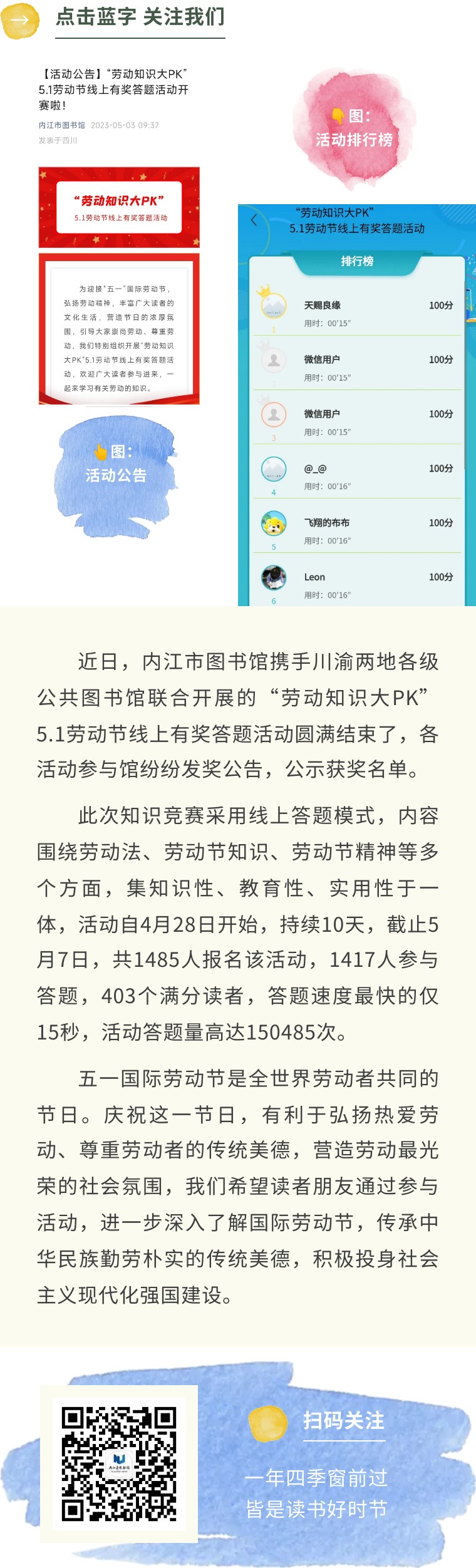 【活动回顾】内江市图书馆“劳动知识大PK” 线上有奖答题活动圆满结束!