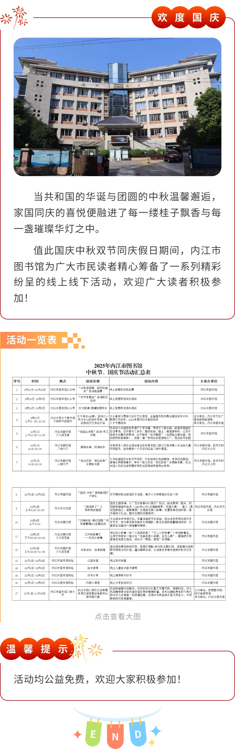 【活动公告】内江市图书馆国庆中秋活动安排一览表