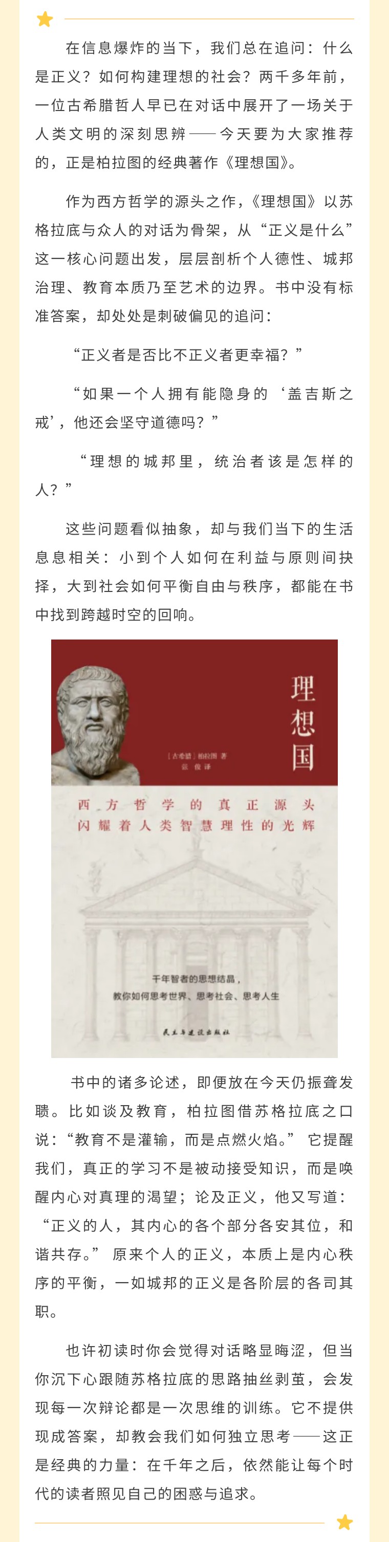 【书单推荐|穿越千年的智慧对话】为何我们仍需读《理想国》?