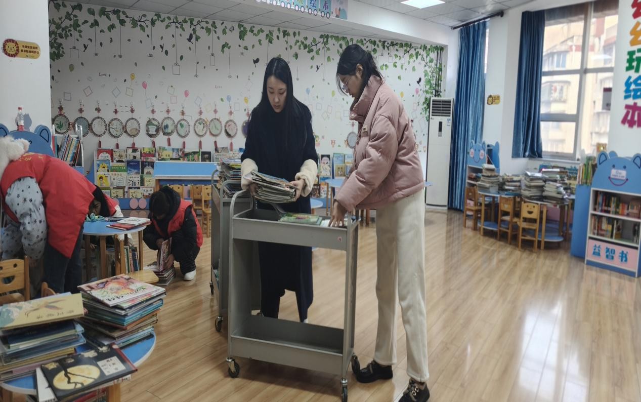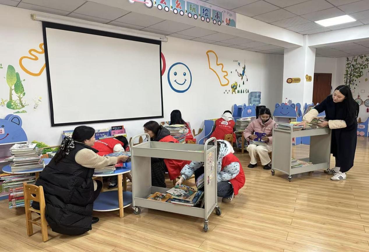 为优化亲子阅读服务,解决藏书密集、低龄儿童取阅不便等问题,12 月 10 日,少儿部联合师院志愿者,对亲子阅览室开展集中整理与提质工作。