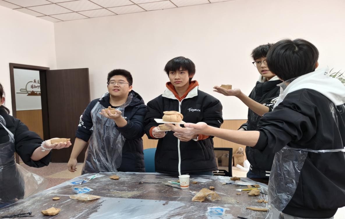 学子们领取安全无毒的陶土材料包后,即刻投入创作。指尖翻飞间,原本朴素的陶土渐渐被赋予生命,每一件作品都凝聚着学子的巧思与热爱,尽显创意风采。