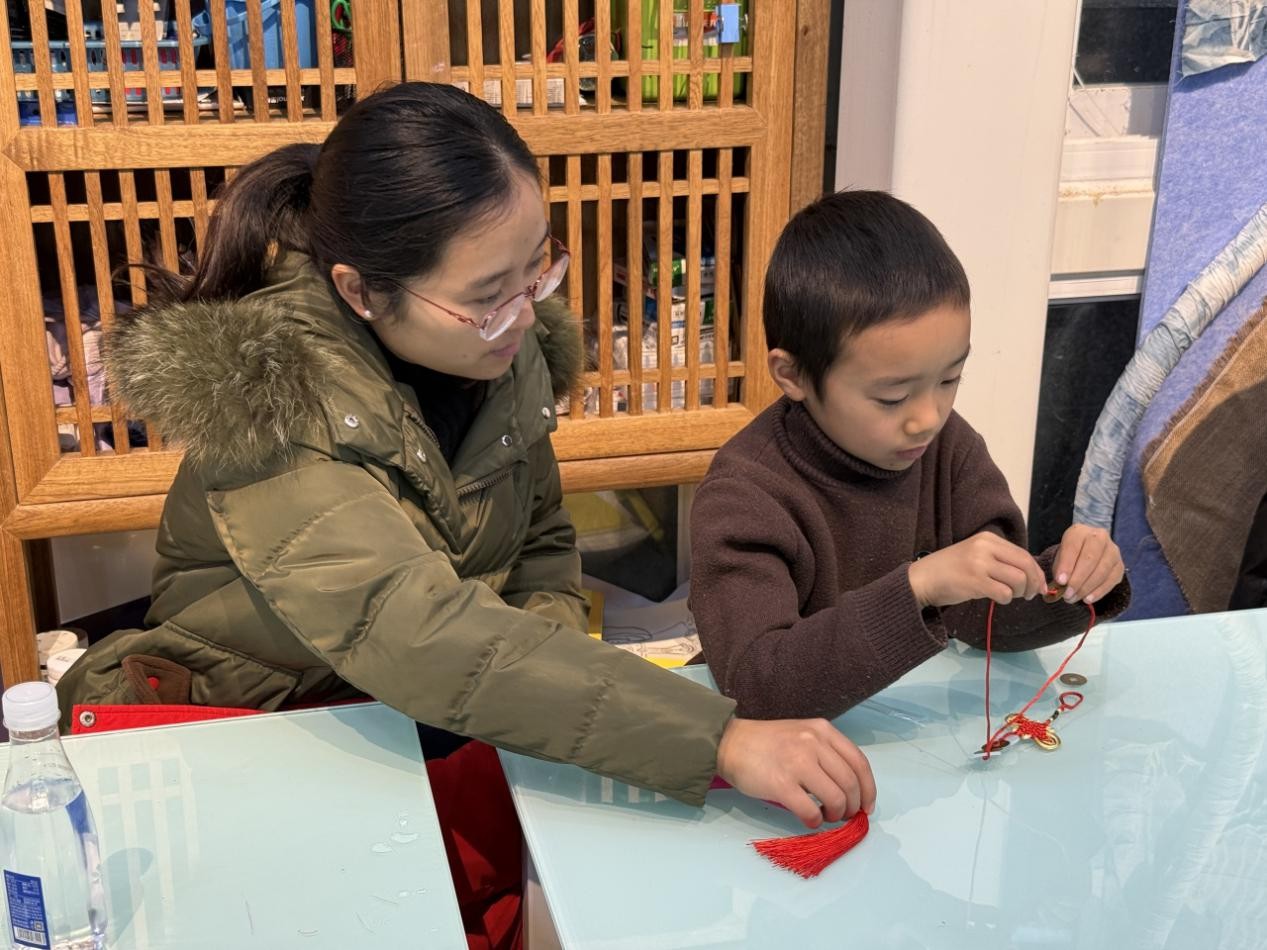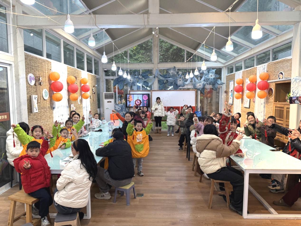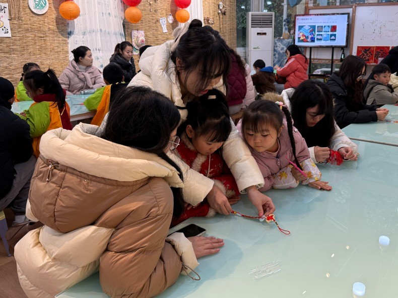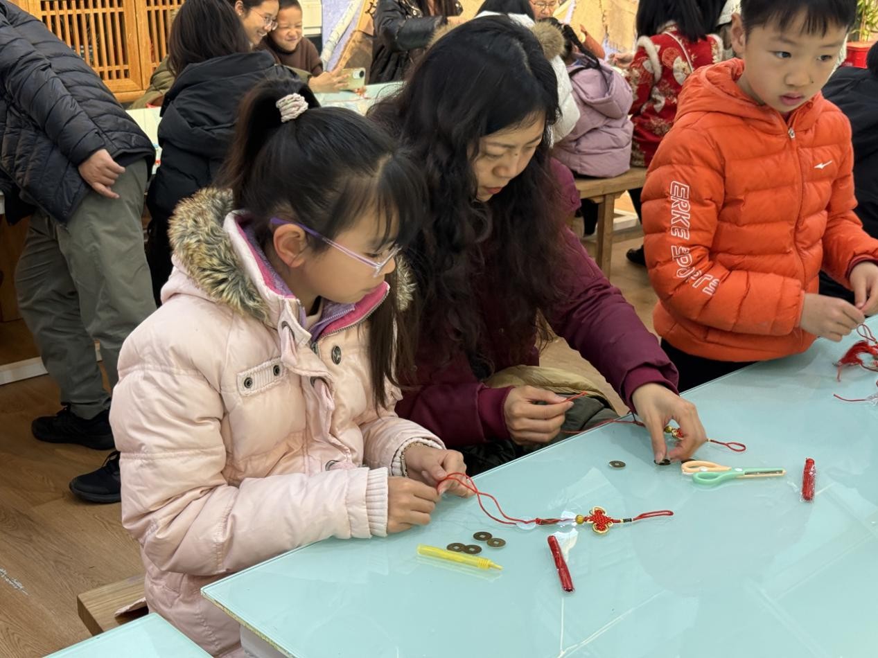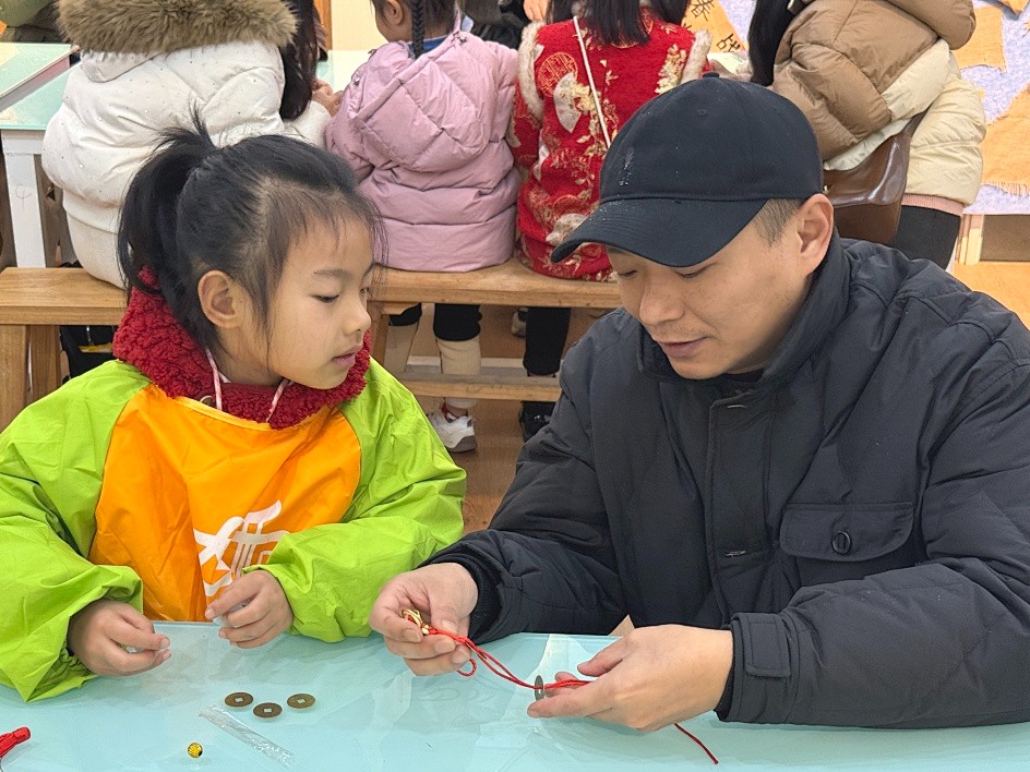 孩子们在老师的指导与家长的协助下,将阅读体验与元旦祝福融入绳结编织中。穿、绕、编、系,一个个灵动的中国结逐渐成型,大家专注的模样尽显对传统文化的热爱。最后,所有亲子家庭手持亲手制作的中国结集体合影,定格下这份满载创意与温情的节日记忆。