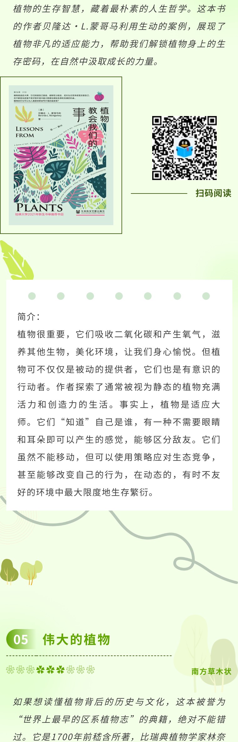 我们总以为,植物是安静、被动的生命,只能扎根土壤,默默生长。但这本书会告诉你:植物或许拥有“智能”,它们会“感知”、会“交流”、会“做选择”,甚至可能拥有属于自己的“思考”方式。