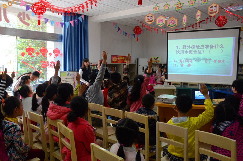 为丰富少年儿童文化生活,激发孩子阅读图书兴趣,内江市图书馆于2016年3月5日上午在少儿阅览室开展了“阅读第一”的第六期------“跟着贝尔去冒险”主题活动。
