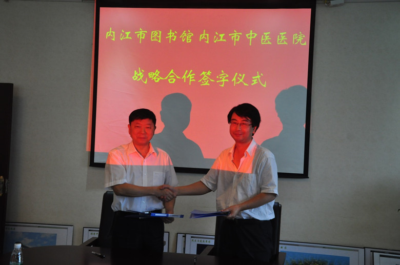 在“内江市图书馆、内江市中医医院战略合作协议签字仪式”上,明确了双方的权利与义务。内江市图书馆先期向分馆提供500册图书、数十种报纸和若干种类期刊,向读者提供借阅服务;对分馆进行业务指导及人员培训;实现借阅一体化管理,读者既可以把图书借走,也可以在阅览室内设立的阅览桌进行阅览;负责计算机管理软件的选择、安装、维护和技术指导,利用分馆电子阅览室提供电子图书、报刊等电子资源的检索与阅览服务。