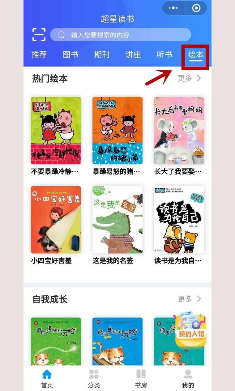 其次,点击小程序中“绘本模块”或根据绘本名称搜索绘本即可在线免费阅读。