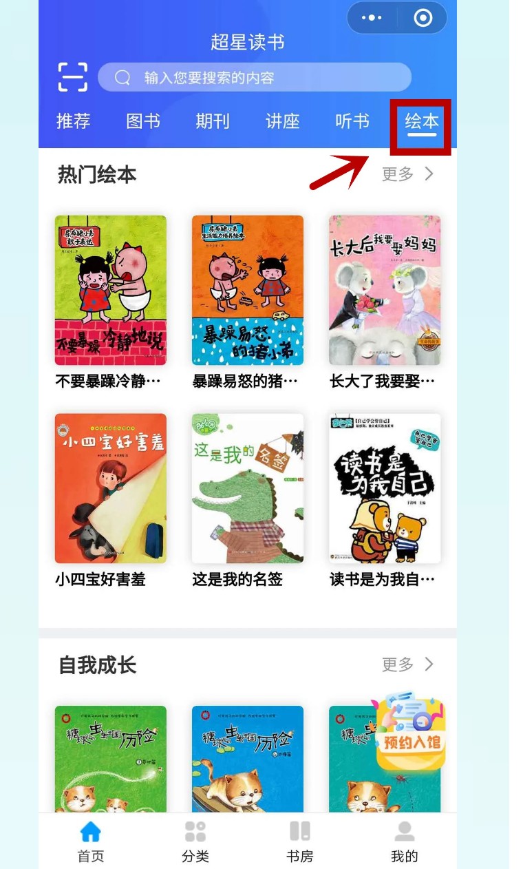 其次,点击小程序中“绘本模块”或根据绘本名称搜索绘本即可在线免费阅读。