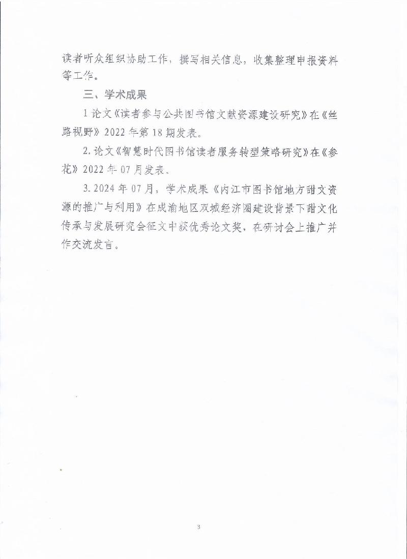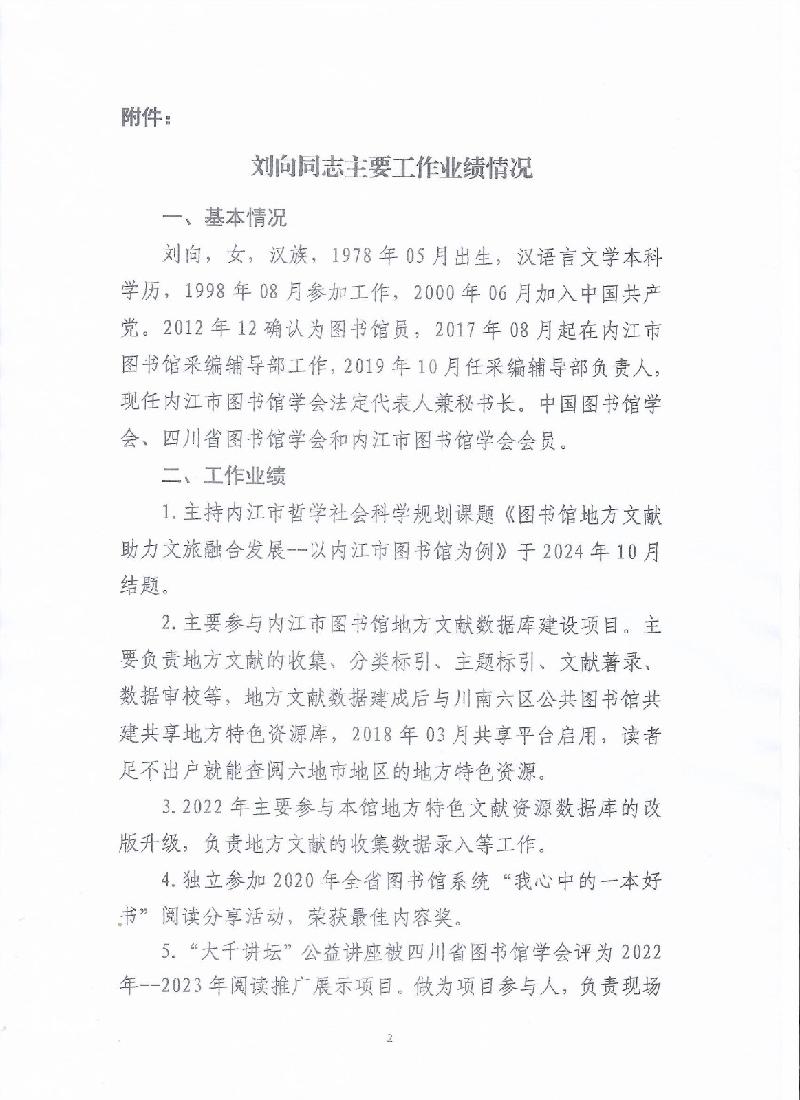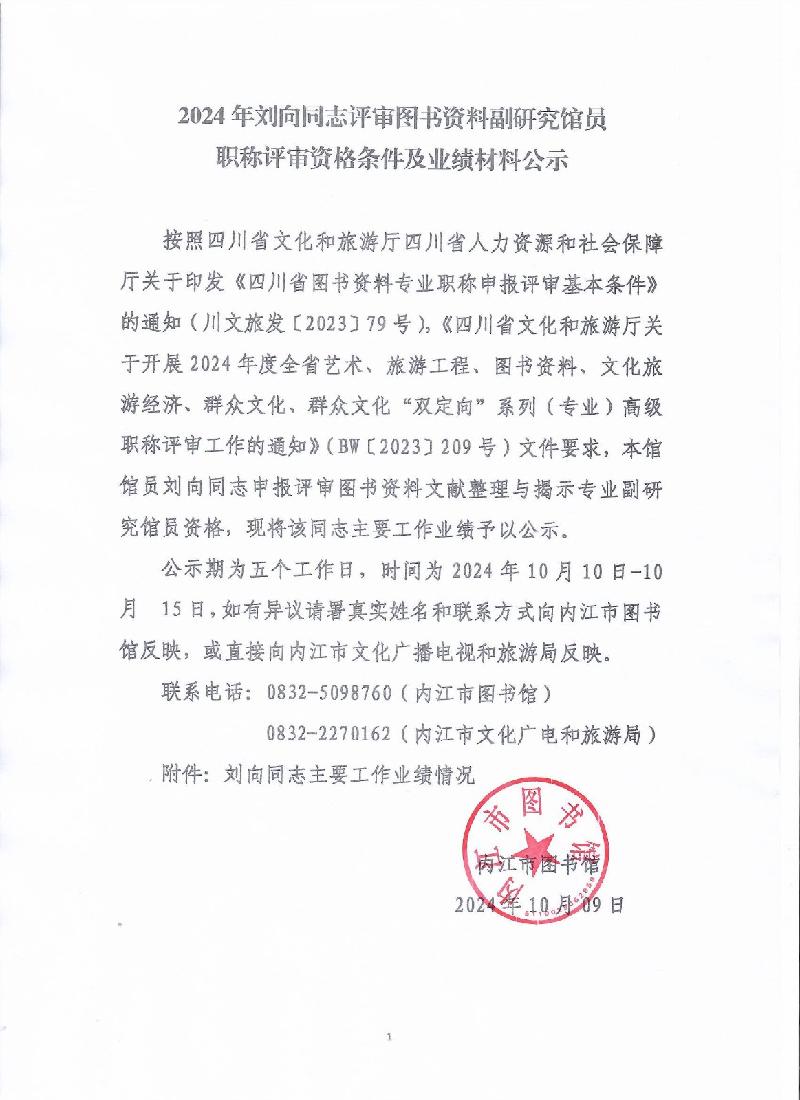 关于刘向同志评审副研究馆员主要业绩材料公示