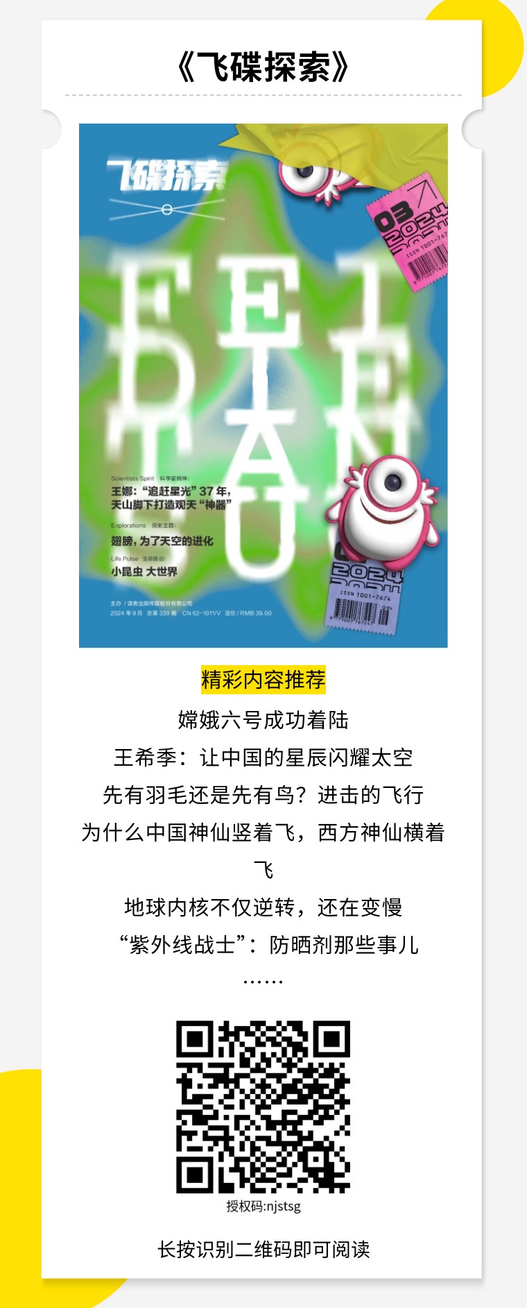 太空、UFO、外星人……《飞碟探索》为所有人打开了一个神秘的世界。我们勇敢地想象人类之外的智慧生命,相信地球之外的宇宙中有无限可能。我们虽平凡,但心中有星辰在列,拥有光年之外的精神世界。打开《飞碟探索》,让天真和好奇带我们再次“起飞”。