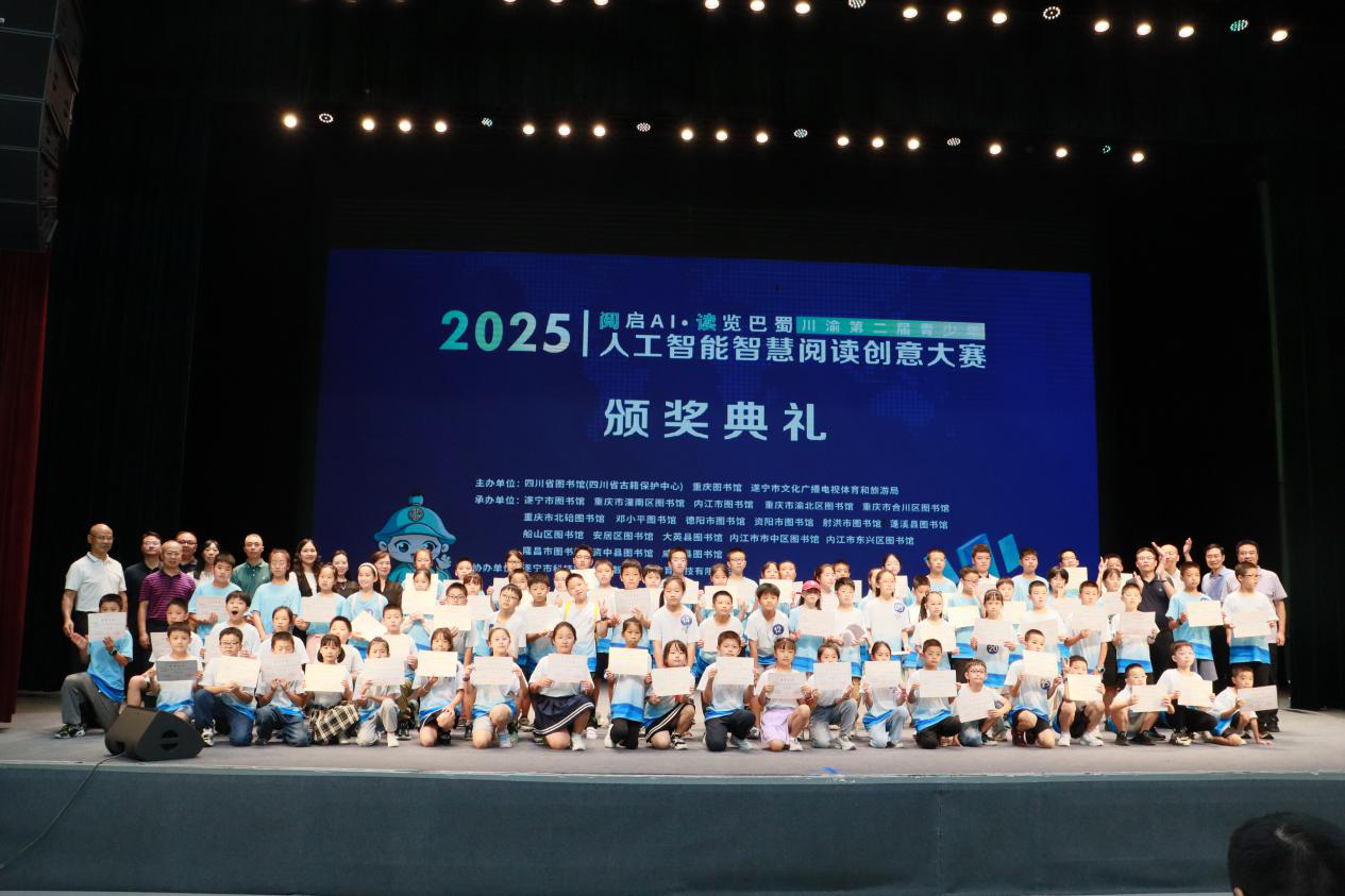 9月13日,2025川渝第二届青少年人工智能(智慧阅读)创意大赛总决赛在遂宁市文化中心落幕,内江市图书馆组织的参赛队伍喜获丰硕成果。内江代表队创意搭建组4人获三等奖、2人获二等奖,创新挑战组7人获三等奖、2人获二等奖、1人获一等奖,内江市图书馆、资中县图书馆分别荣获“2025数字阅读优秀案例”,彰显了内江市在青少年科创教育与智慧阅读服务领域的扎实成效。