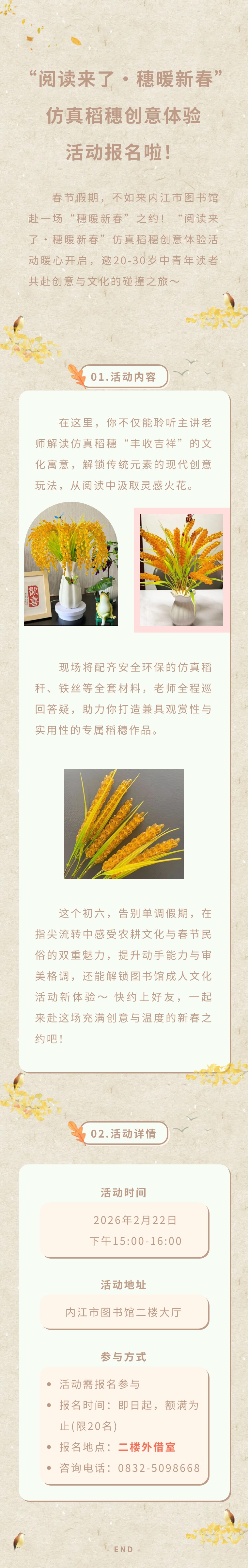 【新春活动报名】“阅读来了·穗暖新春”仿真稻穗创意体验活动报名啦!
