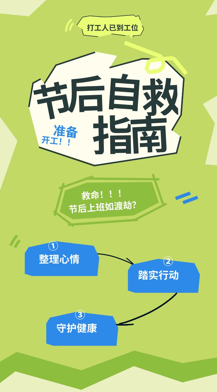想要快速缓解假期综合症,重回活力满满的满格状态,就需要从思想、行动和身体三方面下功夫:先调整心态、整理心情,再专注工作、踏实行动,最后也不要忘记关照身体,守护健康。只有这样,才能告别节后不适,稳稳实现“开工大吉”。