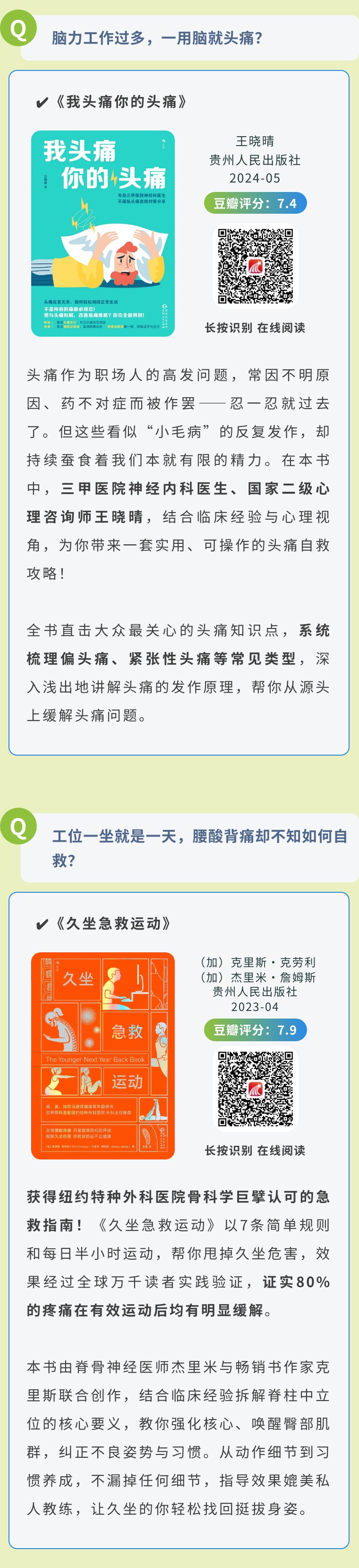 年后开工,身体频频报警?头痛、腰酸、久坐僵硬……别再硬抗了!以下三本书从科学认知到实用方法,帮你解决职场人最常见的身体困扰,把健康真正落到实处。