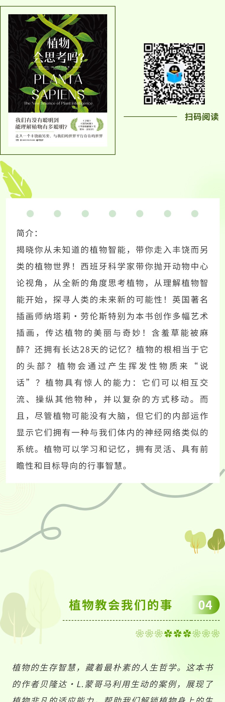 我们总以为,植物是安静、被动的生命,只能扎根土壤,默默生长。但这本书会告诉你:植物或许拥有“智能”,它们会“感知”、会“交流”、会“做选择”,甚至可能拥有属于自己的“思考”方式。