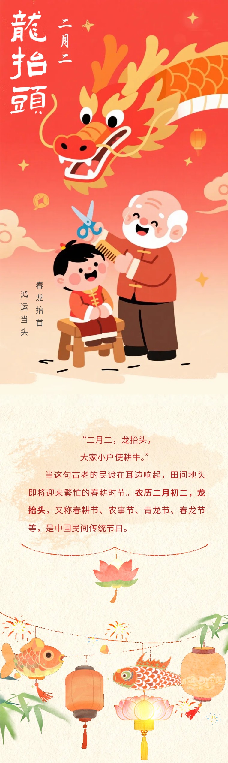 在这个春回大地的日子,无论你是否去理发,无论你吃的是龙鳞还是龙须,愿这条从东方地平线升起的巨龙,为你带来一年的好运气。二月二,龙抬头,愿你鸿运当头,万事兴“龙”!