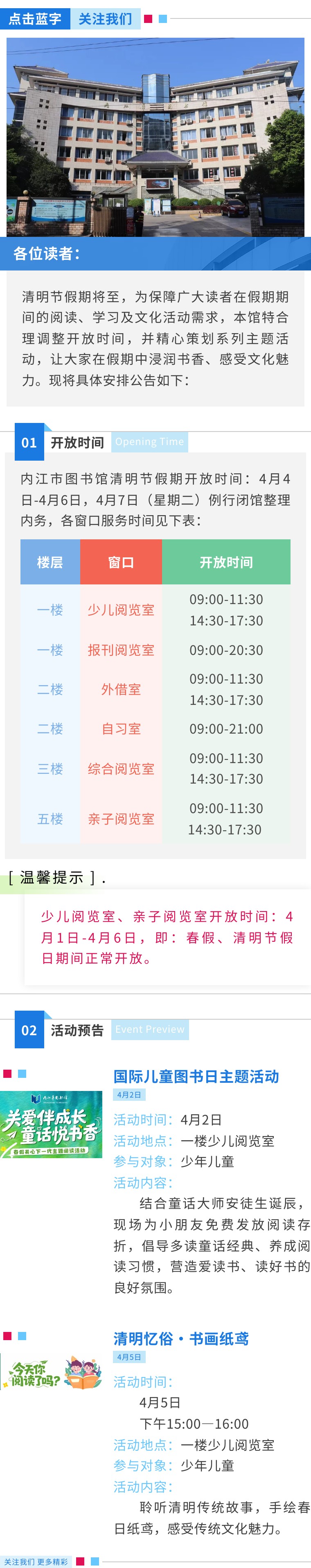 【开放公告】内江市图书馆清明节假日期间正常开放